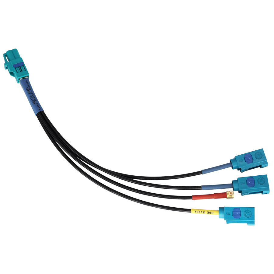 - Mini Fakra Z 公头转Fakra Z*3+MCX四合一汽车数据传输线